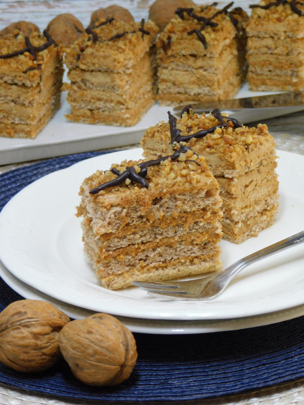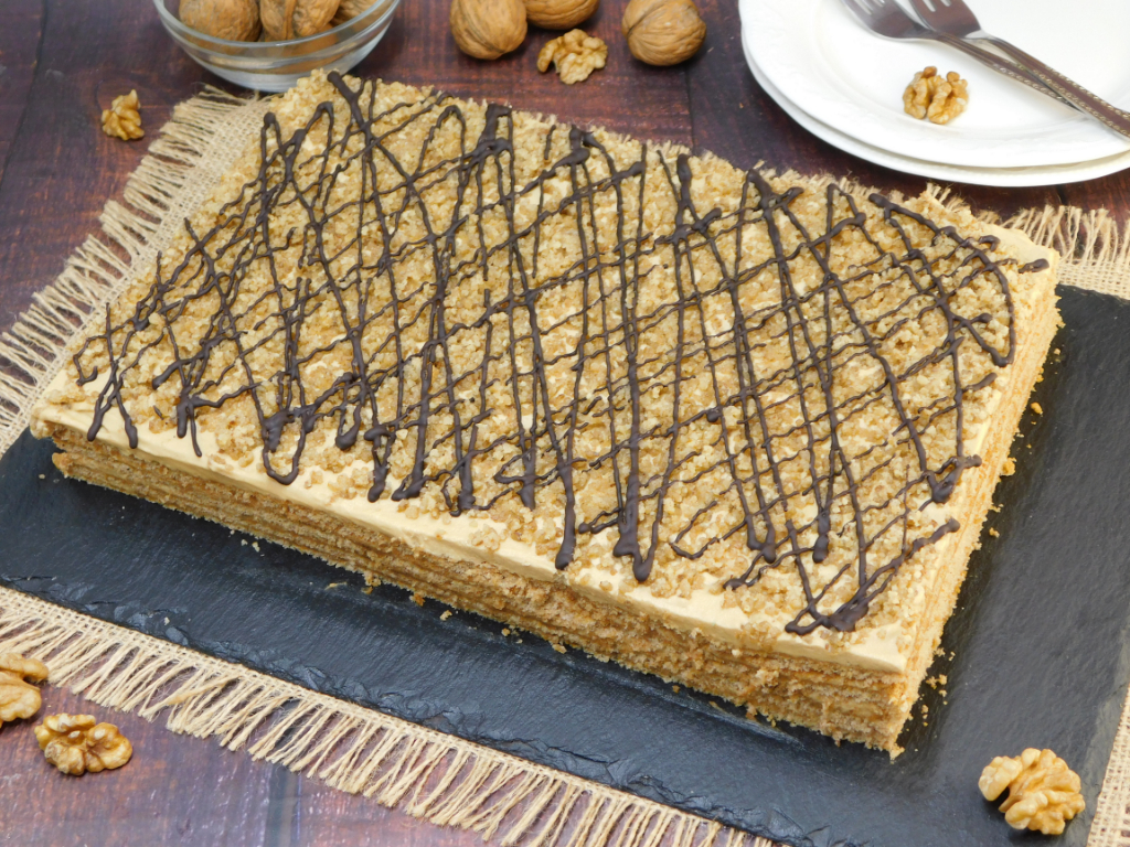 A mézes-diós ízvilág mindig is közel állt hozzánk, így nem is volt kérdés, a Marlenka az egyik nagy kedvencünk lett már az első falat után. A boltokban kapható gluténmentes verziót összehasonlítottam a neten keringő receptekkel, de akkora eltérések voltak, hogy úgy döntöttem megpróbálok egy saját verziót összerakni, ami nagyon hasonló az eredetihez. A sok tesztsütés, a családdal és a nem gluténmentesen étkező ismerősökkel való kóstoltatáson vagyunk túl. Egyik jobb volt, mint a másik, de a kóstolók szerint ez a verzió hasonlít legjobban a boltokban kapható gluténmentes verzióhoz.