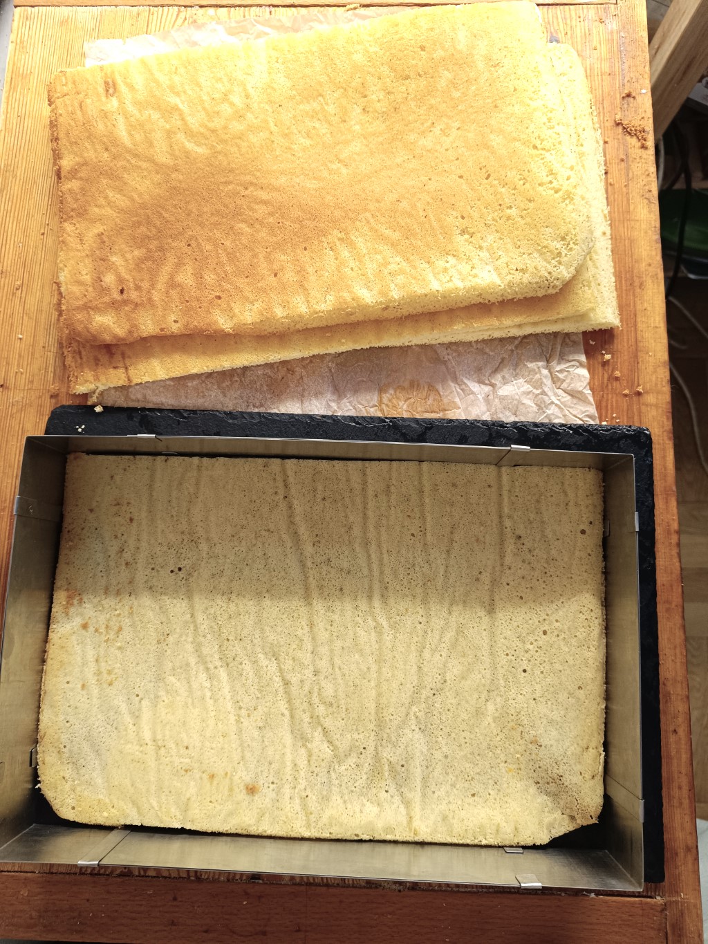 2 db tepsit ( 43 x 35 ) sütőpapírral kibélelünk és a papírokat olajjal lekenjük. A tésztamasszát ketté vesszük ( 2 x 350 g ) és elsimítjuk a tepsikben. 150 fok hőlégkeverésen előmelegített sütőben, a két tepsit egyszerre betéve 14 perc alatt készre sütjük. Akinek NINCS hőlégkeveréses funkció a sütőjén, ő egyesével süsse a lapokat 140 fok alsó-felső sütési módozaton 15 percig.